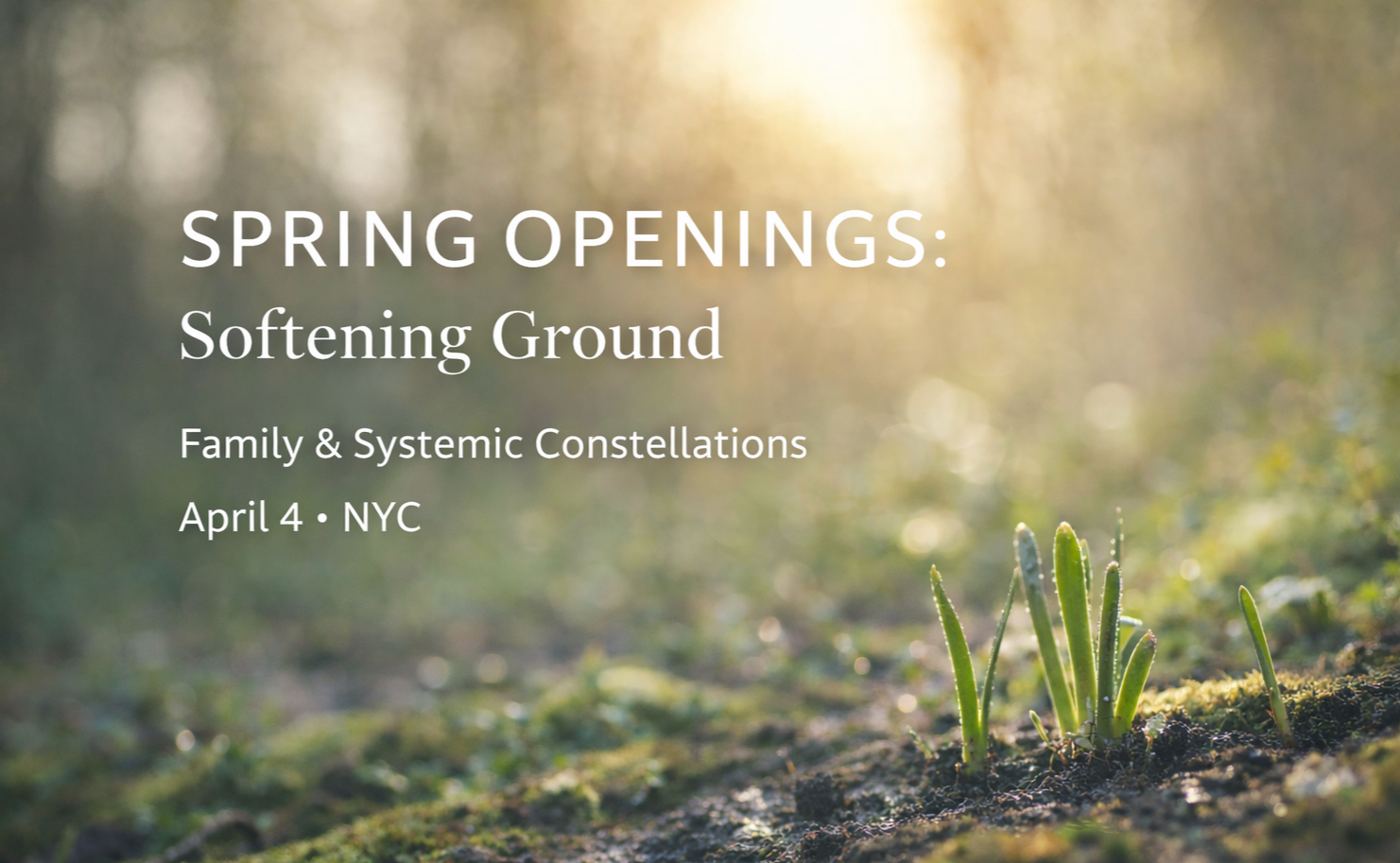 You are warmly invited to a 1/2 day Family & Systemic Constellation Circle in New York City. This gathering will serve as an introduction and practice space for the therapeutic modality of Family & Systemic Constellations, offering you an opportunity to experience this work in a grounded, accessible, and heartfelt way.